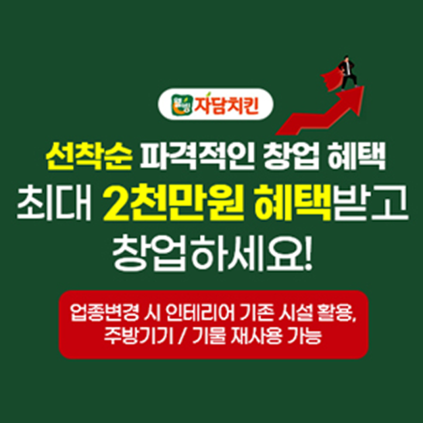 자담치킨 치킨창업 선착순 창업비용 최대 1,500원 지원